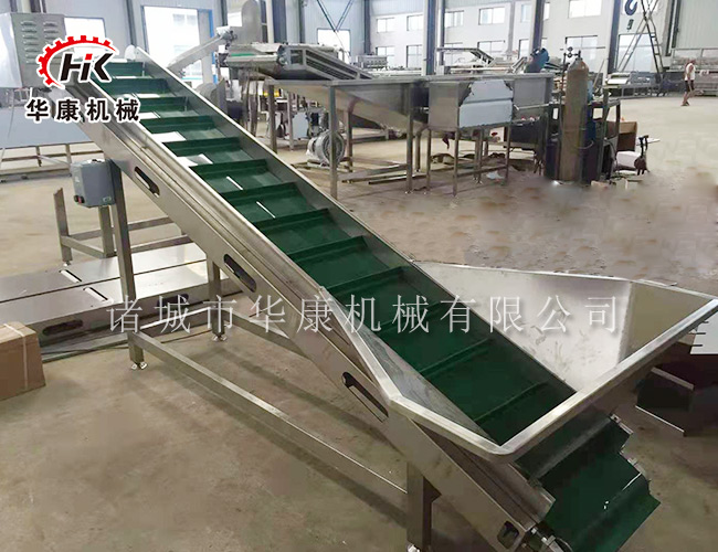 链板输送机以标准链板为承载面,由马达减速机为动力传动;我们可以通过多列链板并行,使链板输送机做的很宽并形成差速,利用多列链板的速度差使多列输送在无挤压的情况下变为单列输送,从而满足饮料贴标、灌装、清洗等设备的单列输送的要求,我们可以将两条链板输送机的头尾部做成重叠式的混合链使得瓶(罐)体处于动态过度状态,使输送线上不滞留物料,可以满足空瓶以及实瓶压力和无压力输送。