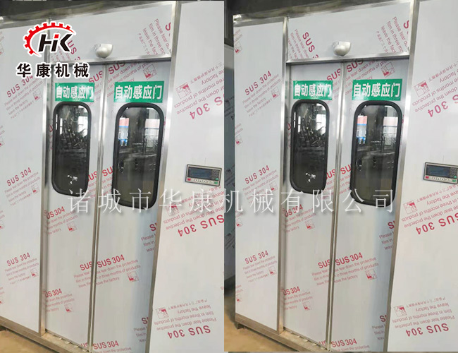 1、自动化控制,单人单吹风淋室系统采用PLC智能化的控制手段,控制面板上LED显示屏可正确显示风淋的运行状态、双门的互锁状态、风淋周期进度和延时开门状态。并设有光电感应器,单向通道风淋室,从非洁净区进入,关门后红外线感应到人就吹淋,吹淋后入门锁闭,只能从出门走出风淋室;