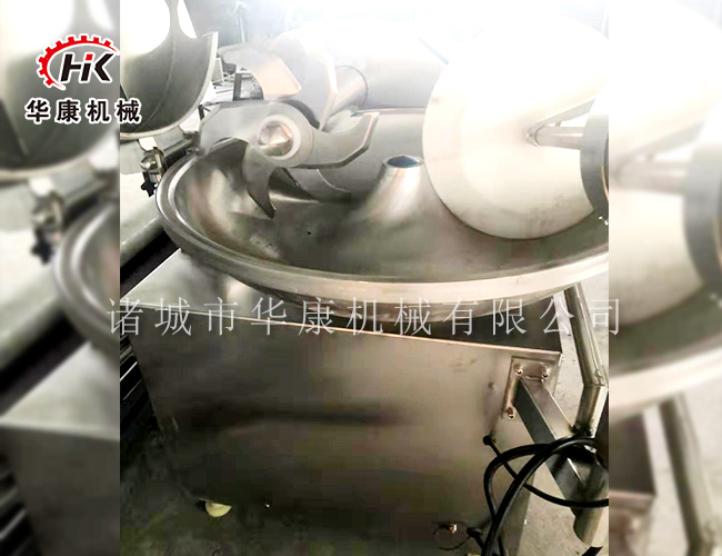 斩拌机利用斩刀高速旋转的斩切作用,将肉及辅料斩成肉馅或肉泥,还可以将辅料、冰片。水与肉馅或肉块一起搅拌均匀。斩拌机采用不锈钢作原料,结构大方美观、易清洗,达到仪器卫生标准工艺进步、设计合理,能确保肉制品的斩切细度,发热小,斩切时间短,提高产品的弹性和出品率。